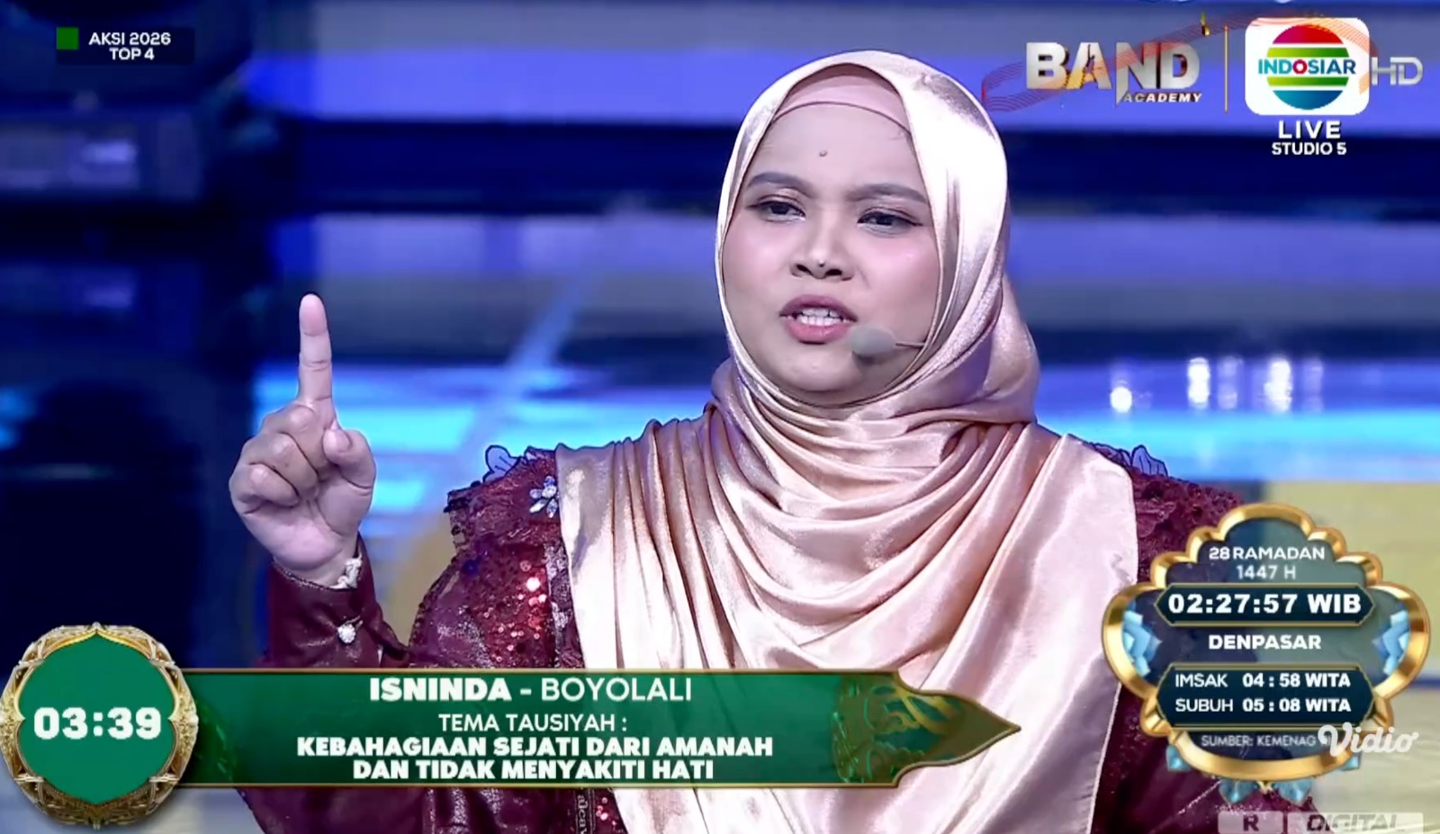 PBA UIN Surakarta - Kabar membanggakan datang dari Program Studi Pendidikan Bahasa Arab (PBA), Fakultas Tarbiyah UIN Raden Mas Said Surakarta. Salah satu alumni terbaik PBA yang kini juga berkiprah sebagai dosen di Fakultas Tarbiyah, Ustazah Isninda Nur Masitoh, berhasil melaju ke babak Grand Final dalam ajang Akademi Sahur Indonesia (AKSI) Indosiar 2026.